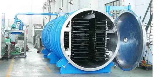 • На втором этапе сырье помещается в вакуумную камеру, после чего нагревается до 35° и начинается процесс обезвоживания – водяные пары изнутри продукта поднимаются на его поверхность, а затем собираются на конденсаторе. Вместе с тем в продукте образуются поры за счет пространства, которое раньше занимала жидкость.