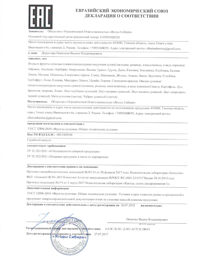 Мы работаем с заготовителями по всей европейской части России, Урала, Сибири и ближних стран СНГ. Готовы производить и поставлять сушеные ягоды, фрукты, овощи вакуумной и сублимационной сушки любых видов, в любых объемах.